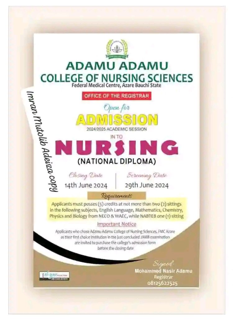 Adamu Adamu College of Nursing Science, Azare, Bauchi State, has commenced the sales of forms for admission into its ND and HND Nursing programs for the 2024/2025 academic year.