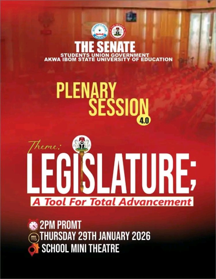 The Senate of the Students’ Union Government (SUG), Akwa Ibom State University of Education (AKSUED), Afaha Nsit, has formally invited all students of the institution to attend a crucial Senate Plenary Session scheduled to deliberate on pressing campus issues.