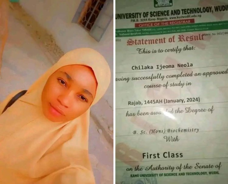 Neola Ijeoma, a student of the Aliko Dangote University of Science and Technology, Wudil, has graduated with a First-Class Honors degree in Biochemistry.
