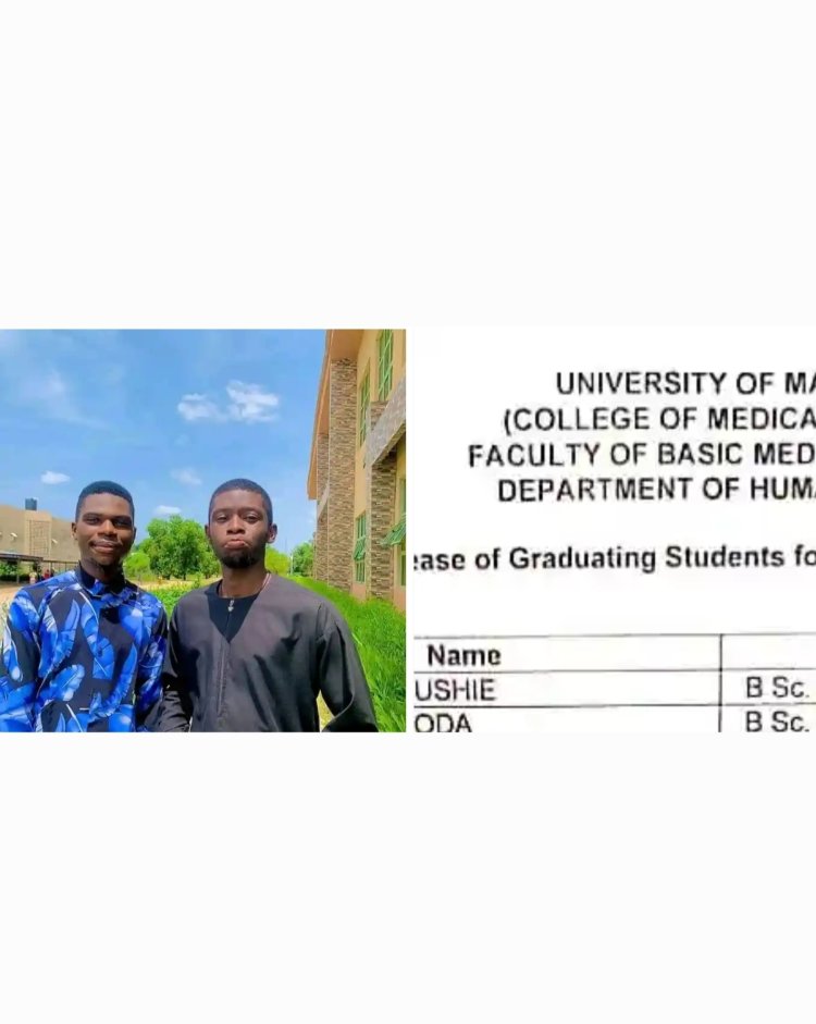 Atsahyel Ngatoda and Collins Ushie, two exceptional students and close friends, have made history by graduating with first-class degrees in Human Anatomy from the University of Maiduguri (UNIMAID), College of Medical Sciences, Faculty of Basic Medical Sciences.
