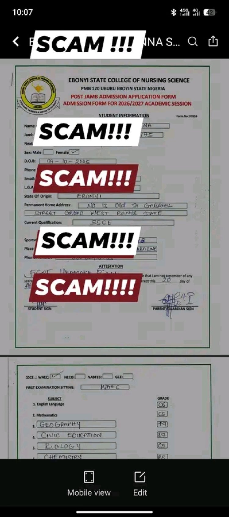 The management of Ebonyi State College of Nursing Sciences has issued a public warning over fraudulent activities involving individuals and groups allegedly selling fake admission forms in the institution’s name.