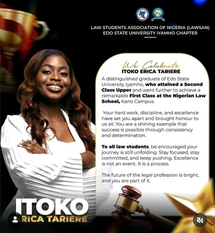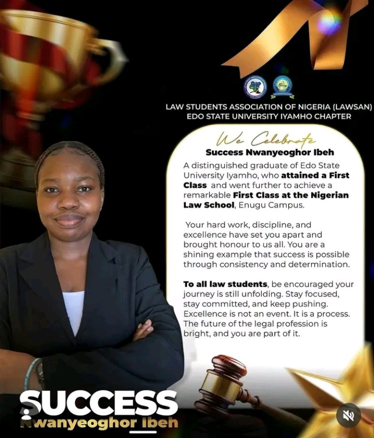 Two alumni of the Faculty of Law at Edo State University Iyamho have achieved First-Class honours at the Nigerian Law School, reinforcing the institution’s academic standing in legal education.