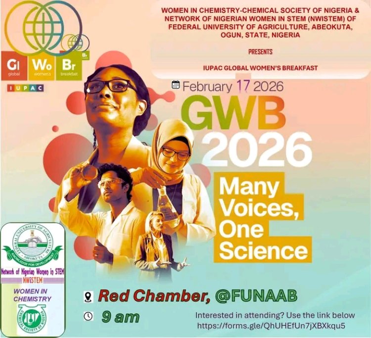 The Federal University of Agriculture, Abeokuta (FUNAAB) will host the IUPAC Global Women’s Breakfast (GWB) 2026 on Tuesday, February 17, 2026, at 9:00 a.m. in the Red Chamber.