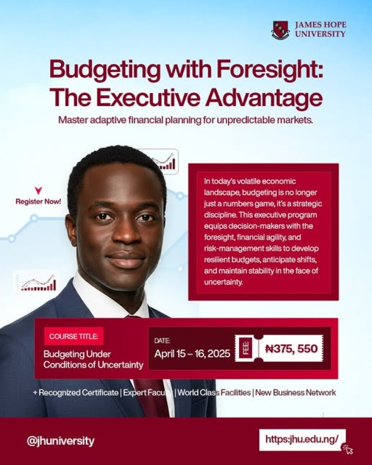 As economic uncertainty continues to challenge businesses worldwide, James Hope Business School has announced an executive short course titled "Budgeting Under Conditions of Uncertainty." The program, set to take place from April 15 to 16, 2025, aims to equip finance professionals, business owners, and executives with the skills needed to navigate unpredictable financial landscapes.