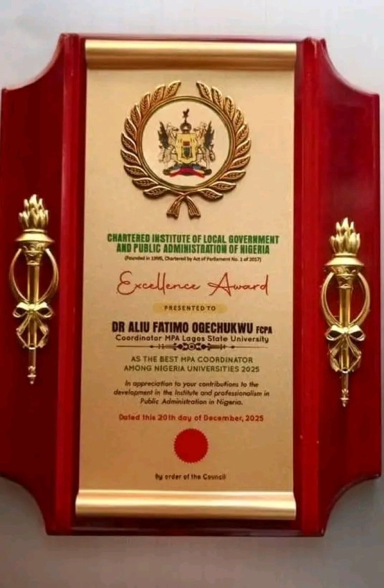 Professor Olatunji-Bello described the recognition as well-earned, noting that Dr. Aliu’s commitment to academic excellence, curriculum innovation and student development has elevated LASU’s MPA programme to national prominence. She added that the award is a clear reflection of LASU’s institutional culture of excellence in teaching, research and professional training for public service.