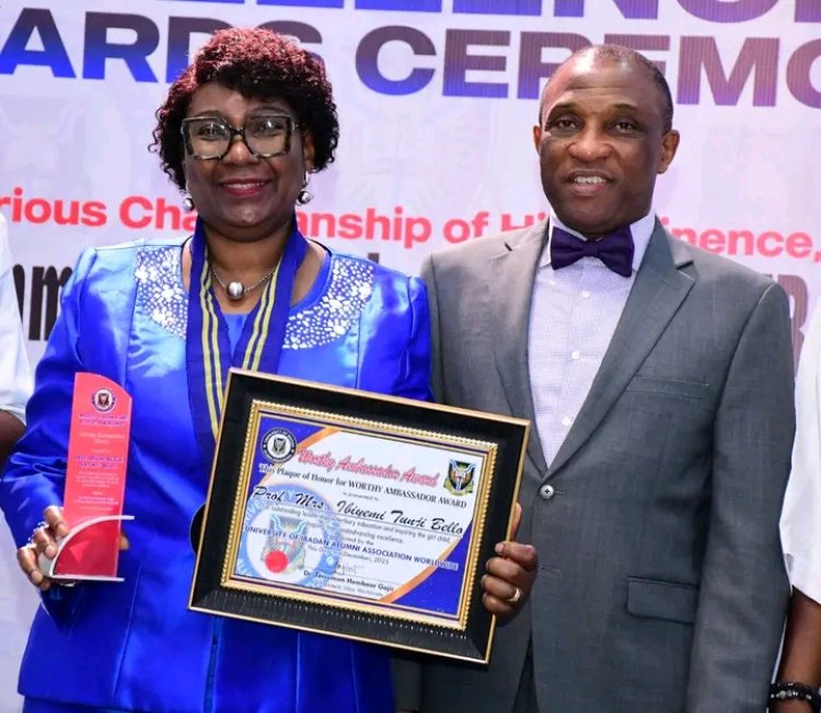 Professor Olatunji-Bello received the Worthy Ambassador Award, sharing the honour with Ryan Hon. Pascal Adigwe, Engr. Abraham Oshadami, and Rt Hon. Jerry Alagbaoso. A proud 1985 graduate of the University of Ibadan, she was recognised for her exceptional leadership in tertiary education, her advocacy for the girl child, and her efforts in shaping lives and promoting academic excellence.