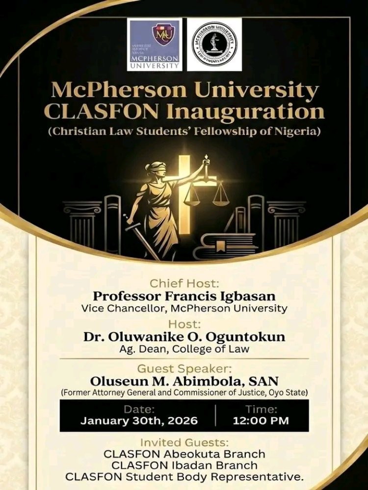 The College of Law, McPherson University, Seriki Sotayo, Ogun State, is set to host a dynamic three-day series of academic and professional programmes aimed at educating, inspiring, and empowering students, legal practitioners, and the wider community.