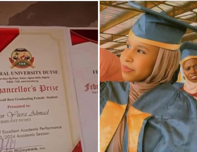 Yusra Ahmad Ridwan has made history at Federal University Dutse (FUD) by emerging as the only student to graduate with a First Class in the Faculty of Basic Medical Sciences, Department of Anatomy.