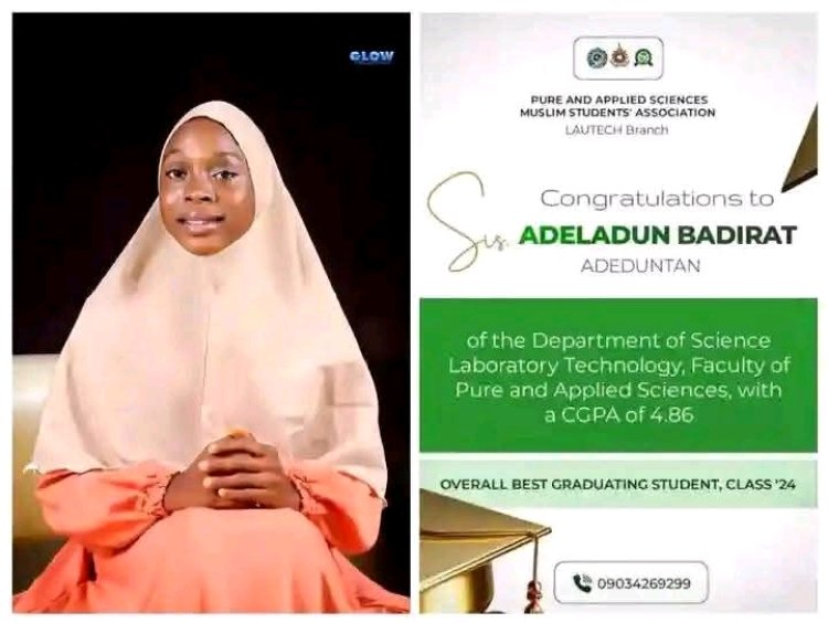 Meet Sis. Badirat Adeladun Adeduntan, the Overall Best Graduating Student of LAUTECH with a remarkable 4.86 CGPA in Science Laboratory Technology