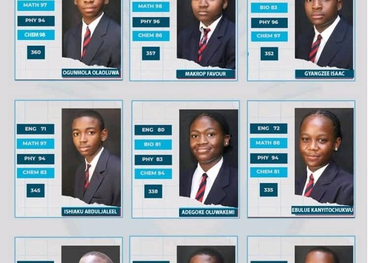 Leading the exceptional group is 16-year-old Ogunmolu Olaoluwa, who scored 360 with a subject combination of English, Mathematics, Physics, and Chemistry.