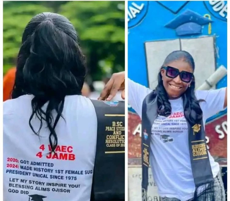 Comr. Blessing Alims, the former President of the Students' Union Government (SUG) at the University of Calabar (UNICAL), has officially announced her graduation from the institution.