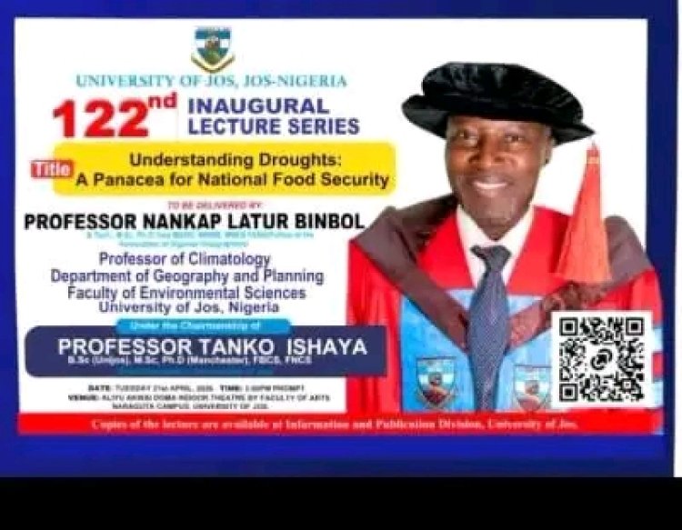 University of Jos has scheduled its 122nd Professorial Inaugural Lecture, with a focus on drought management and its implications for national food security.