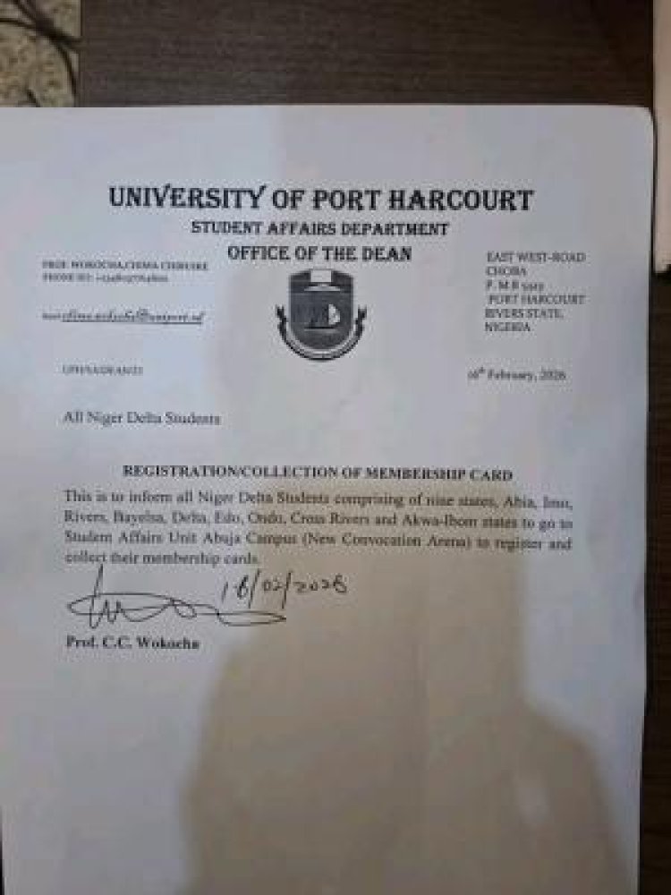The University of Port Harcourt Student Affairs Department has announced the commencement of registration and collection of membership cards for students from the Niger Delta region.