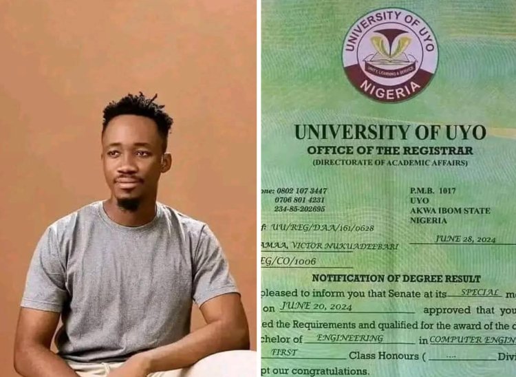 Victor, a student of the University of Uyo (UNIUYO), has graduated with First Class honors in Computer Engineering.